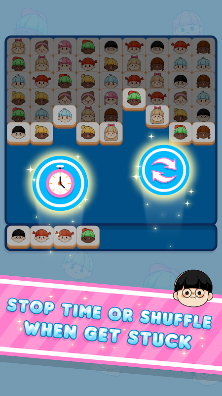 Tile world is waiting for you. In Tile Friends, you need to watch out for the timer and tap on the three same tiles to eliminate them. The tiles always roll down, it depends on your eyesight whether it's good or not to seek out the identical ones before they touch the bottom. Use a timer to lengthen the time limit and refresh the board game whenever you get stuck. Tile world is full of excitement and fun waiting for you to explore. Tile Friends now and have fun on the way.