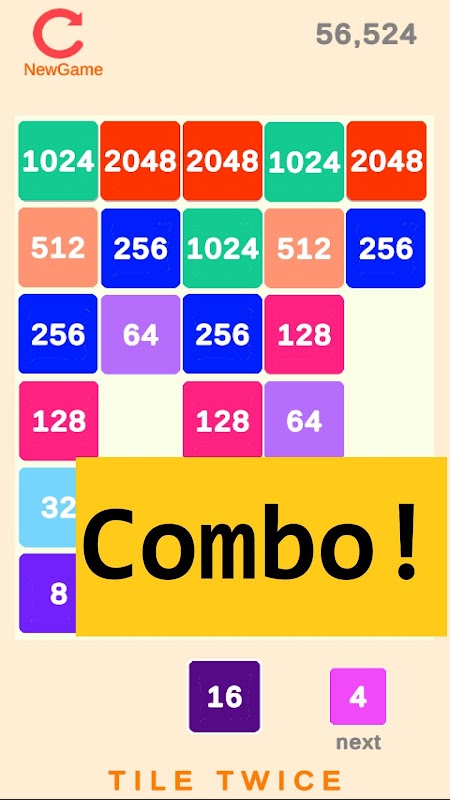 روی صفحه ضربه بزنید تا کاشیها را به پنج مربع منتقل کنید، و وقتی کاشیهایی با همان تعداد به یکدیگر متصل میشوند، ادغام میشوند و تعدادشان دو برابر میشود.
