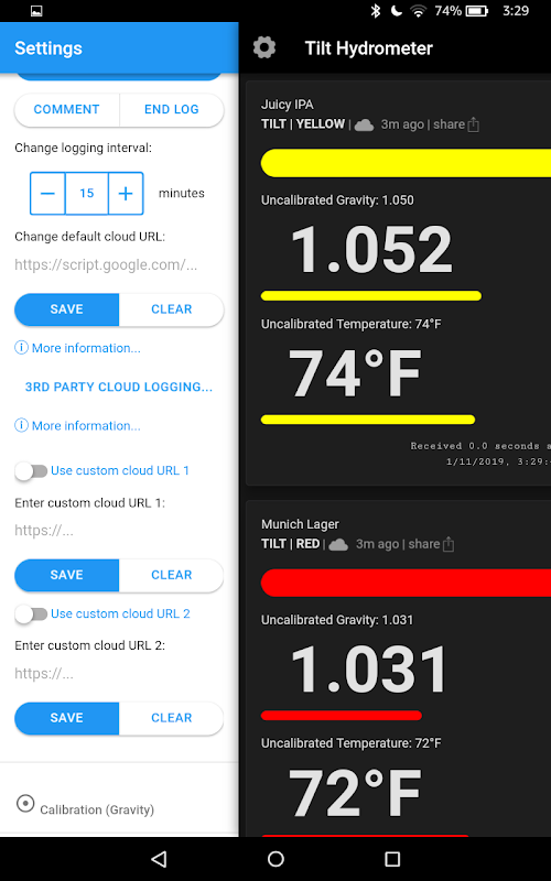 برنامه Tilt 2 برنامه رسمی برای هیدرومترهای TILT است. از این برنامه برای ثبت دادههای گرانش و دما به ابر مانند Google Sheets یا سایر نقاط پایانی ابر سفارشی استفاده کنید. ما از brewfather.app، brewstat.us، monitor.log و Grainfather.com در میان دیگران پشتیبانی می کنیم. (برای دریافت اطلاعات بیشتر در مورد راه اندازی برنامه، به وب سایت مربوطه آنها مراجعه کنید). همچنین می توانید مستقیماً به تلفن یا رایانه لوحی خود وارد شوید و یک CSV را برای خود یا دیگران ایمیل کنید. توجه داشته باشید که هنگام ورود به سیستم باید در محدوده Tilt خود قرار داشته باشید یا یک تلفن یا تبلت در کنار مخزن تخمیر خود برای ثبت خودکار مداوم داشته باشید. (بسیار توصیه شده!). همچنین می توانید Tilt خود را کالیبره کنید و واحدها را از درجه فارنهایت به سانتیگراد و از وزن مخصوص (60 درجه فارنهایت/15.6 درجه سانتیگراد) به درجه افلاطون تغییر دهید.