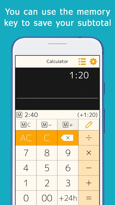 وقتی عددی را وارد میکنید، «:» بهطور خودکار برای تفکیک ساعت و دقیقه وارد میشود تا بتوانید سریع محاسبه کنید.