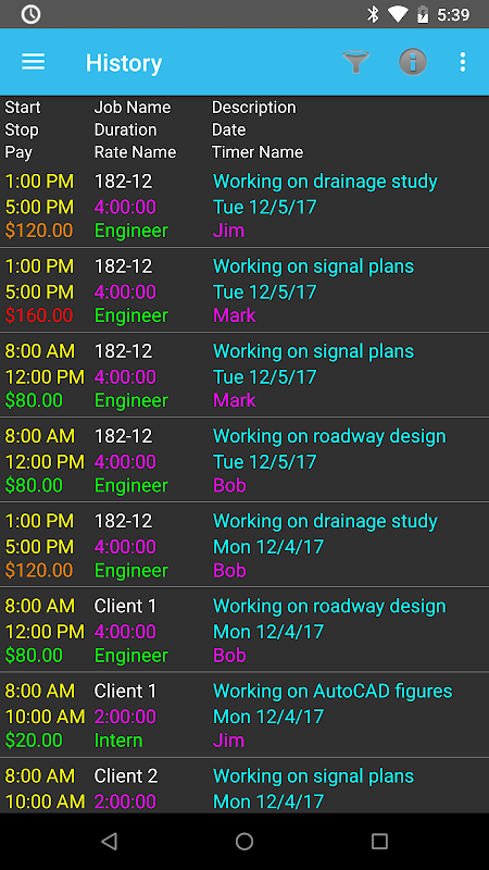 پیگیری زمان خود را با این ساعت زمان. ورود به در، از، همه بر روی تلفن خود را با آندروید کارت زمان. سپس هنگامی که شما انجام می شود، در فشار یک دکمه، ایمیل برنامه زمانی خود را به خود را در قالب CSV، همه با آندروید کارت زمان