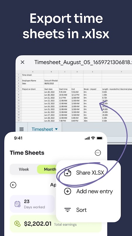 📅 برگه های زمانی را در عرض چند ثانیه به راحتی در قالب XLSX ایجاد و به اشتراک بگذارید.