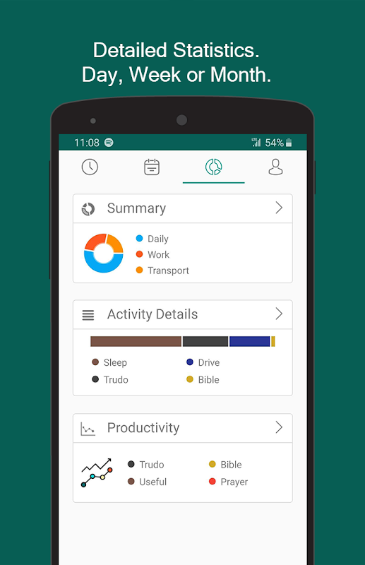 ردیاب زمان: فعالیت های سفارشی، 1000+ آیکون قابل جستجو، آمار بهره وری.