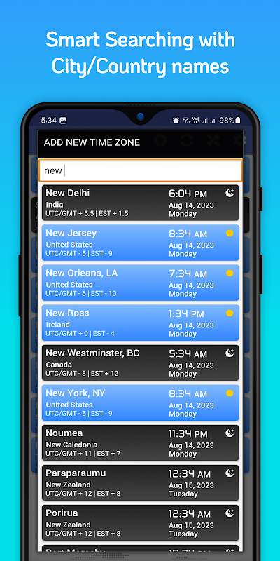 ساعت مبدل مناطق زمانی جهانی یک ماشین حساب منطقه ، برنامه نقشه منطقه است. تبدیل منطقه زمانی به شما کمک می کند تا مناطق زمانی مورد نظر خود را در لیست جستجو کرده و اضافه کنید. مبدل منطقه زمانی - برنامه اکنون ساعت جهانی است همچنین دارای قطب نما و سرعت سنج است. قطب نما به شما کمک می کند تا مسیر خود را جستجو کنید و مسیر خود را پیدا کنید و درجه هایی از شمال را نشان می دهد. سرعت سنج ابزاری عالی برای بررسی سرعت است. سرعت سنج نشان دهنده سرعت فعلی ، سرعت متوسط ، حداکثر سرعت ، زمان و مسافت طی شده است.