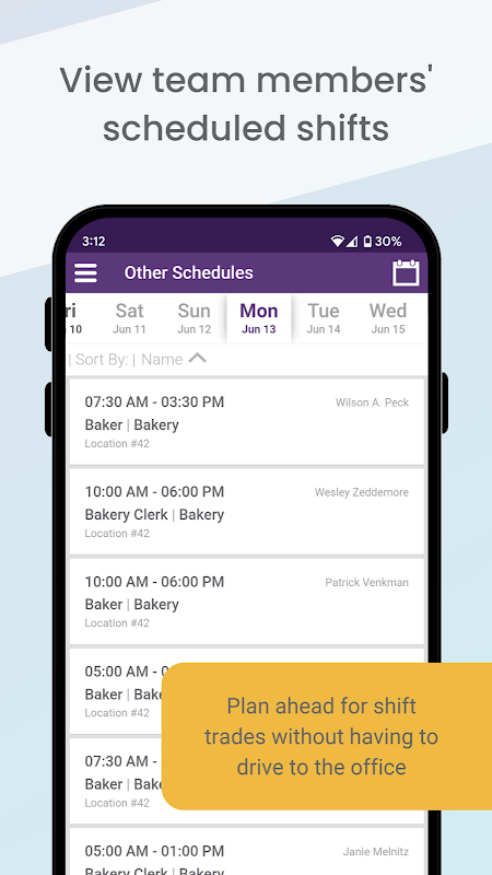 ✔ برنامه های اعضای تیم خود را مشاهده کنید (اگر کارفرما اجازه دهد)