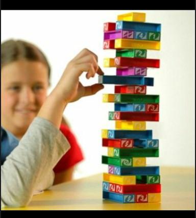 Uno Stacko is: the player surrounds the compiled Uno Stacko block. the first player takes the beam and places it in the topmost position. Uno Stacko is a block building game for 2-10 players.