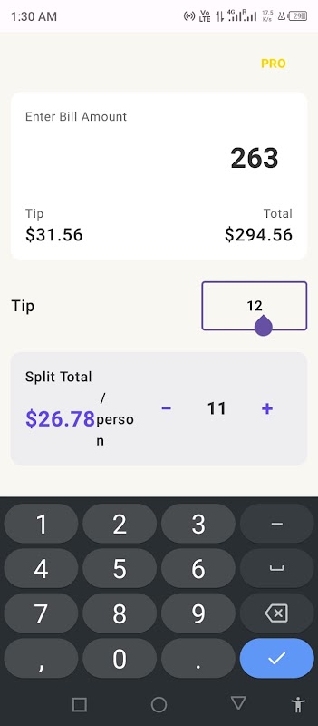 ماشین حساب نکته هوشمند به راحتی صورتحساب ها را تقسیم کنید، نکات را محاسبه کنید، و جمع را گرد کنید.