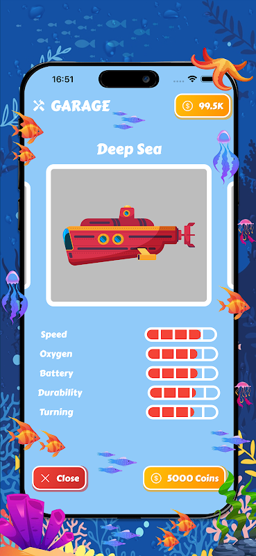 سکه ها را جمع آوری کنید، زیردریایی های خود را ارتقا دهید و در حالی که به سمت کشتی تایتانیک فرود می آیید و در عمق 12500 فوتی زیر سطح قرار می گیرید، آب های خائنانه را تسخیر کنید. با دشمنان مهیب روبرو شوید، از موانع طفره بروید و سطح اکسیژن و انرژی خود را با دقت مدیریت کنید.