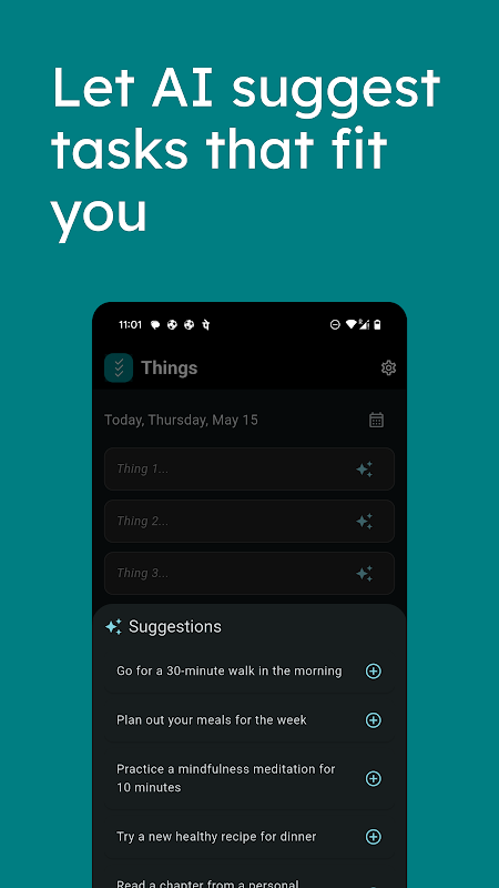 اکثر لیست های وظایف بیش از حد طولانی هستند. 3 چیز آن را ساده می کند - شما هر روز فقط سه کار را انتخاب می کنید (یا با هوش مصنوعی پیشنهاد می کنید). بزرگ یا کوچک، سه برد در روز می تواند همه چیز را تغییر دهد.