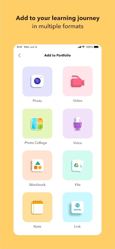 * سفر یادگیری خود را در قالب عکس، فیلم، گالری، یادداشت های صوتی و غیره مستند کنید.