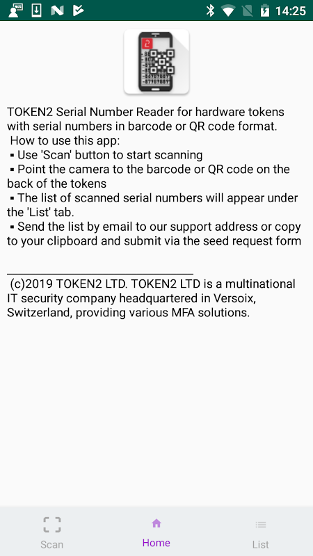 • برنامه‌نما TOKEN2 Serial number reader عکس از صفحه