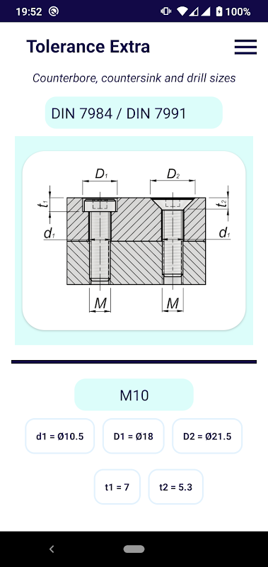 ضد مته ، اندازه گیری و مته (متریک) برای پیچ های ماشین.