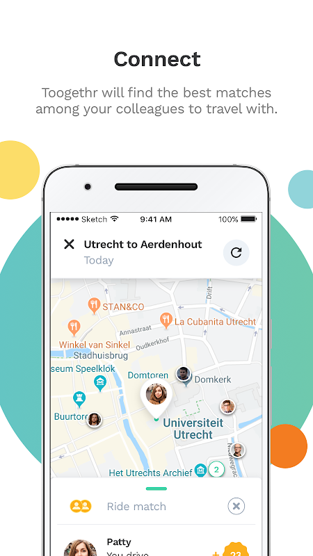 Toogethr آن را فوق العاده آسان برای دریافت همراه با همکاران و به اشتراک گذاری یک سوار.