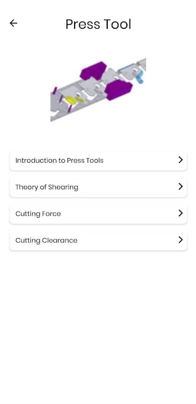 این برنامه دارای اطلاعات اولیه در مورد عملیات و محاسبات ابزار پرس، مواد پلاستیکی، نقص های قالب گیری تزریق پلاستیک و عیب یابی، ریخته گری فشار بالا و نقص است.