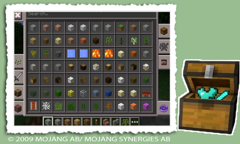 برای شروع استفاده از افزودنی جعبه ابزار ما در Minecraft PE ، باید در بالا سمت چپ روی [M] کلیک کنید. پس از کلیک روی آن ، به رابط گرافیکی GUI minecraft منتقل می شوید ، جایی که می توانید به همه عملکردها و پیشرفت های جدید دسترسی پیدا کنید. همچنین می توانید روی 3 نقطه کلیک کنید تا به همه موارد وانیل دسترسی پیدا کنید و minecraft را مسدود کنید ، 3 نقطه در پایین صفحه تلفن هوشمند شما قرار دارد. از فیلد برای جستجوی اشیاء minecraft استفاده کنید یا برای انتخاب مورد دلخواه به پایین بروید و آن را به سلول مورد نظر GUI موجودی minecraft pe بکشید.