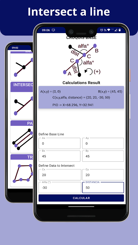 محاسبات ضروری: خطوط قطعه، خطوط گسترش، تقاطع، و بیشتر.