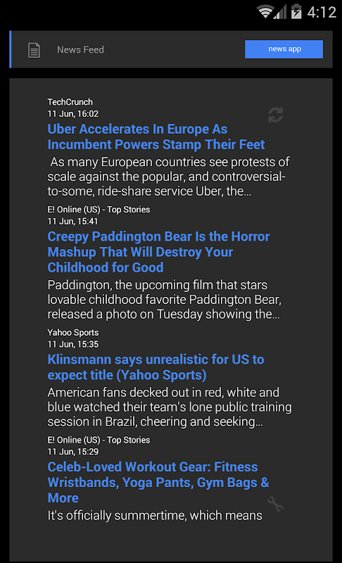 - Live news feed lets you set your favorite news sources