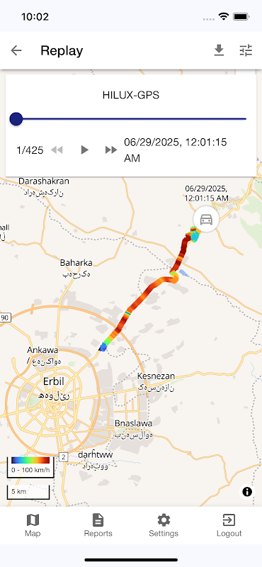 مشاهده تاریخچه سفر، گزارش حرکت، و توقف