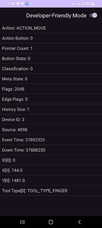"Touch Event Debugger" ابزاری قدرتمند است که برای توسعه دهندگان و آزمایش کنندگان طراحی شده است تا رویدادهای لمسی را در دستگاه های اندرویدی تجزیه و تحلیل و اشکال زدایی کنند. چه در حال توسعه یک برنامه جدید باشید و چه یک برنامه موجود را آزمایش کنید، Touch Event Debugger اطلاعات دقیقی در مورد هر رویداد لمسی ارائه میکند و تشخیص و رفع مشکلات را آسانتر میکند.
