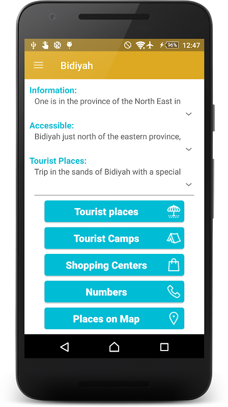 With (Tourism in the North Eastern) app you can know the best places, tourist camps, hotels and shopping centers in: