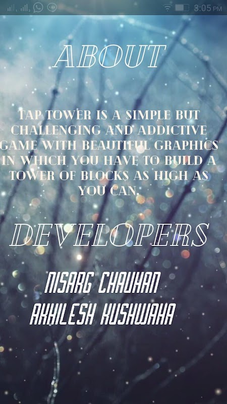 برج Craft یک بازی ساده اما چالش برانگیز و اعتیاد آور با گرافیک زیبا که در آن شما باید برای ایجاد یک برج از بلوک های بالا به عنوان شما can.It یک قاتل هم بزرگ است.