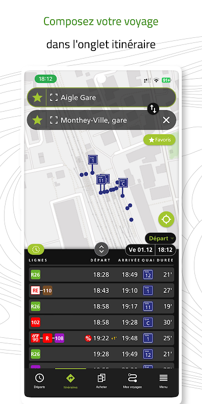 TPC Mobile به شما امکان می دهد سفرهای خود را برنامه ریزی کنید و بلیط های حمل و نقل را در کل شبکه TPC، Mobilis، CFF، Car Postal، TMR و RegionAlps خریداری کنید.