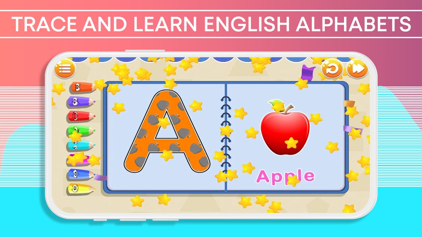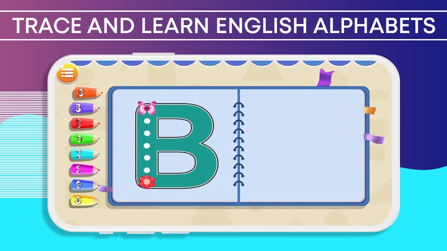 - اجرای برنامه برای کودکان ساده و برنامه سرگرم کننده برای یادگیری نوشتن حروف و اعداد انگلیسی.