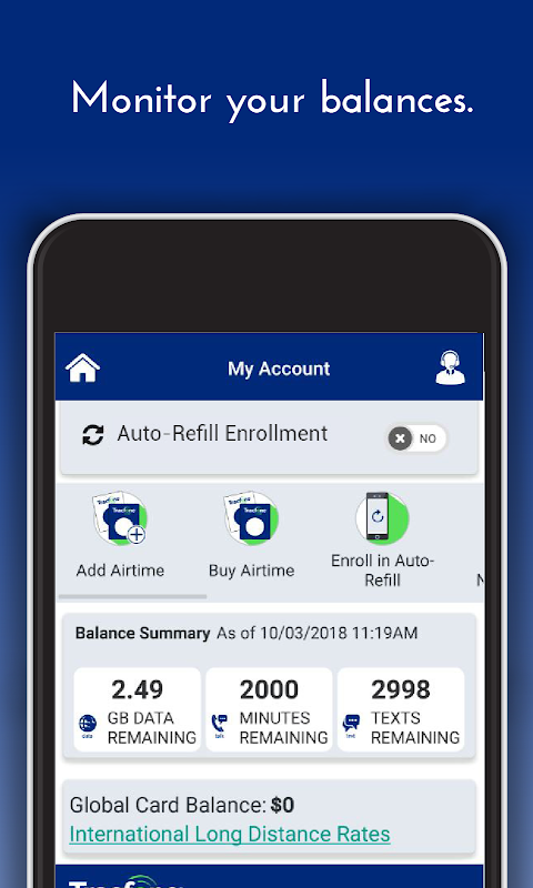 سرویس Tracfone Wireless خود را در هر مکان و در هر زمان مدیریت کنید. همین امروز برنامه Tracfone My Account را دانلود کنید و هرگز نگران نحوه پر کردن مجدد نباشید.