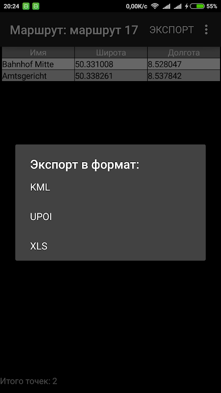 GPS ردیاب و سردبیر نقاط و مسیرهای برای ناوبری در فرمت KML، UPOI، XLS