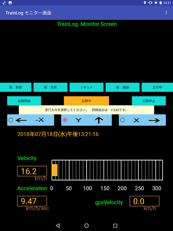 TrainLog نمایش ارزش سرعت و شتاب قطار در حالی که سوار