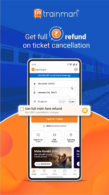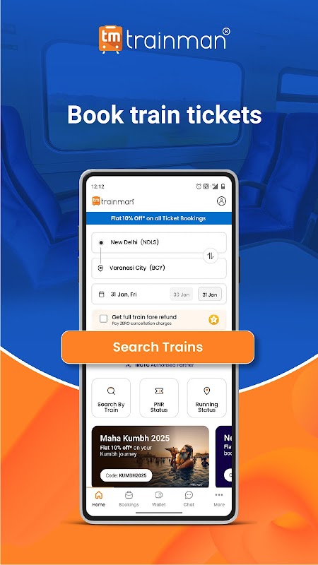 مقرون به صرفه ترین سکوی رزرو بلیط قطار. از طریق برنامه Trainman، بررسی وضعیت PNR خود را دریافت کنید، وضعیت در حال اجرا را ببینید، و موقعیت مربی قطار را به طور یکپارچه بررسی کنید.
