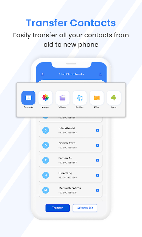 Transfer My Data - Phone Clone به شما امکان می دهد با استفاده از برنامه copy my data به راحتی داده های خود را از یک دستگاه به دستگاه دیگر کپی کنید، کاربران می توانند اطلاعات شخصی، تنظیمات و برنامه های خود را با کمترین تلاش منتقل کنند. انتقال دادههای من - انتقال تلفن همراه Phone Clone هنگام ارتقاء به دستگاه جدید یا جابجایی بین دستگاهها بسیار مفید است، زیرا نیازی به انتقال دستی فایلها، تنظیمات و برنامهها یک به یک را از بین میبرد.