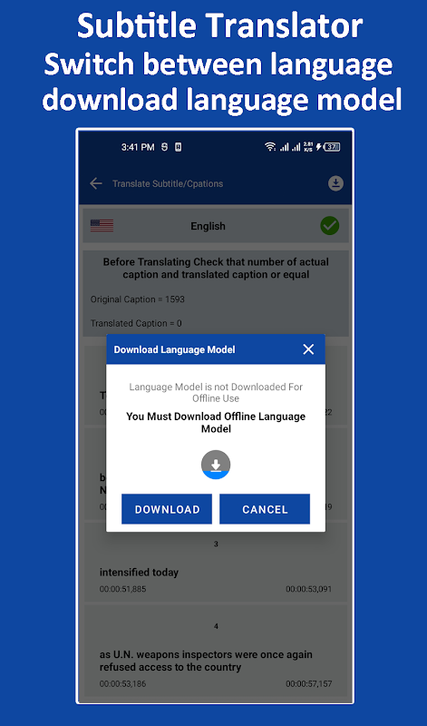 مترجم زیرنویس srt تمام زیرنویسهای فایل srt را در عرض یک ثانیه به زبان دیگری ترجمه میکند. این برنامه همچنین از ترجمه فایل vtt پشتیبانی می کند. برنامه ترجمه زیرنویس زبان زیرنویس را تشخیص می دهد و سپس آن را به زبان مورد نظر شما ترجمه می کند. ابزارها همچنین به عنوان نمایشگر زیرنویس کار می کنند، می توانید به راحتی فایل زیرنویس srt و فایل زیرنویس vtt را مشاهده کنید. تمامی فایل های srt و فایل های vtt را به راحتی مشاهده کنید.