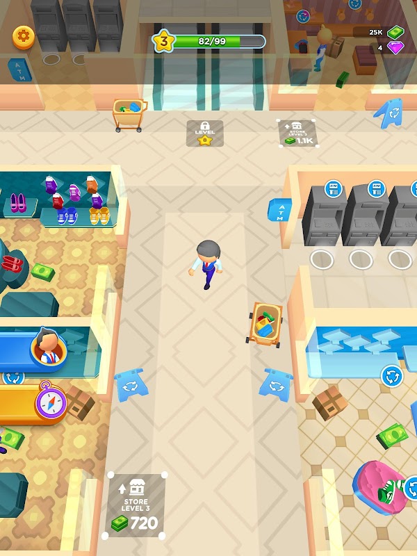 ارتقاهای سودآور: با ارتقای مغازه های خود آنها را به ارتفاعات جدیدی ارتقا دهید. درآمد را افزایش دهید، ویژگیهای جدید را باز کنید و رازهای درآمد رو به رشد را کشف کنید. مکانیکهای آرکید بیحرکت باعث میشوند که بتوانید بهراحتی شاهد پیشرفت مرکز خرید خود باشید.