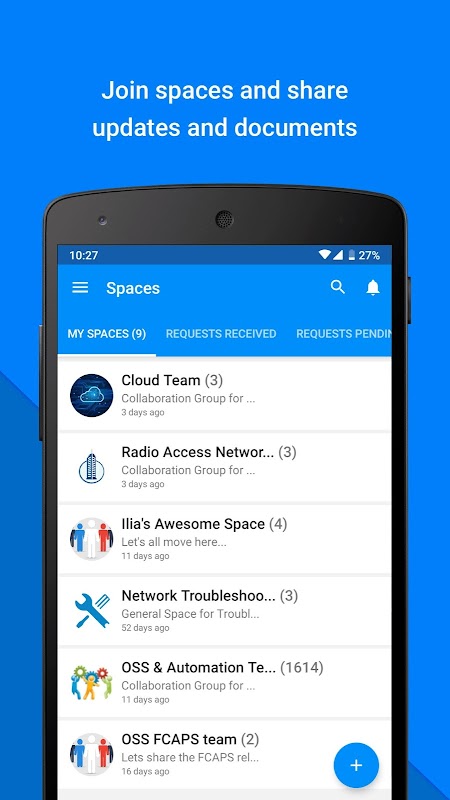 • Have a robust timeline & feed that constantly updates employees of all activities amongst connections, Spaces & Forums including sharing and posting capability.