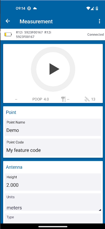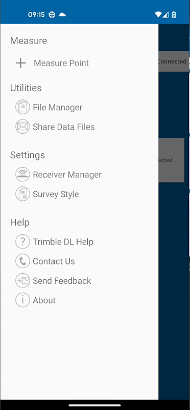 برنامه Trimble DL به شما امکان می دهد اطلاعات ایستگاه نقطه بررسی شده را به همراه اطلاعات آنتن GNSS وارد کنید. پس از وارد کردن اطلاعات ایستگاه، روی دکمه Measure Point ضربه بزنید تا ثبت فایل های داده خام GNSS در حافظه گیرنده آغاز شود. می توانید از برنامه برای مشاهده تمام فایل های داده خام ثبت شده ذخیره شده در گیرنده استفاده کنید. میتوانید فایلهای داده خام را مستقیماً از دستگاه Android به دفتر خود ایمیل کنید.