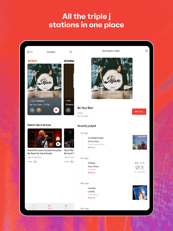 در میان Triple j ، Double J و Triple j Unearthed رادیو زنده بچرخید ، یا همه قسمت های مورد علاقه ، پادکست ها یا فیلم های Like A نسخه خود را در هر زمان با اضافه کردن بخش جدید On On Demand مورد علاقه خود قرار دهید.