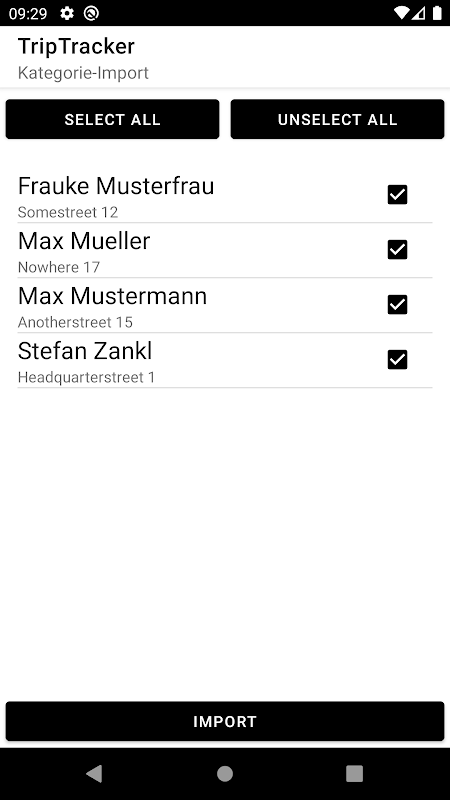 مخاطبین مورد نظر را از دفترچه تلفن خود انتخاب کرده و آنها را به عنوان "دسته" به TripTracker وارد کنید.