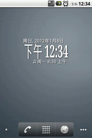 بسیار، بسیار ساده ساعت دیجیتال ویجت 2x1، نشان می دهد زمان، تاریخ و زنگ بعدی. بر روی کلیک کنید، نشان می دهد گفت و گو تنظیمات زنگ (برنامه تلاش می کند تا پیدا مربوطه برنامه زنگ دار).