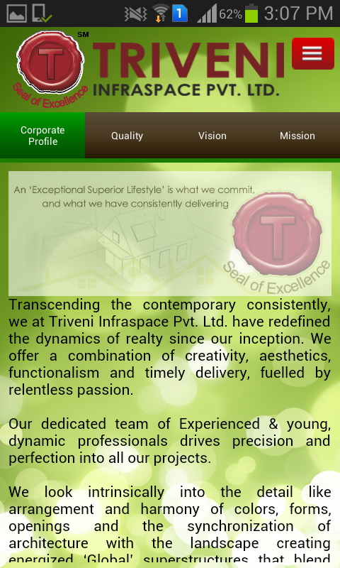 Triveni Infraspace - A نام داخلی با کیفیت و اعتماد از ابتدا آن آجر و شهرت خود را با آجر ساخته شده است، نه تنها برآورده ساختن انتظارات، اما به مراتب آنها را بیش از که در آن مشتریان اول است شعار است، در نتیجه، پروژه Triveni Infraspace های شاد ما به فروش می رسد مشتریان و حرف خود را از دهان هر پروژه تضمین شده است به فروش می رسد و حتی قبل از آن برگ رسم هیئت مدیره.