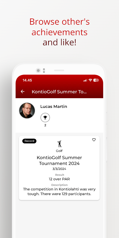 Trophly برنامه برتر برای ورزشکاران است تا دستاوردهای خود را برجسته کنند و با یک جامعه ورزشی پر جنب و جوش ارتباط برقرار کنند. چه آماتور باشید و چه حرفه ای، Trophly به شما کمک می کند نقاط عطف ورزشی خود را به نمایش بگذارید و شناختی را که شایسته آن هستید به دست آورید.