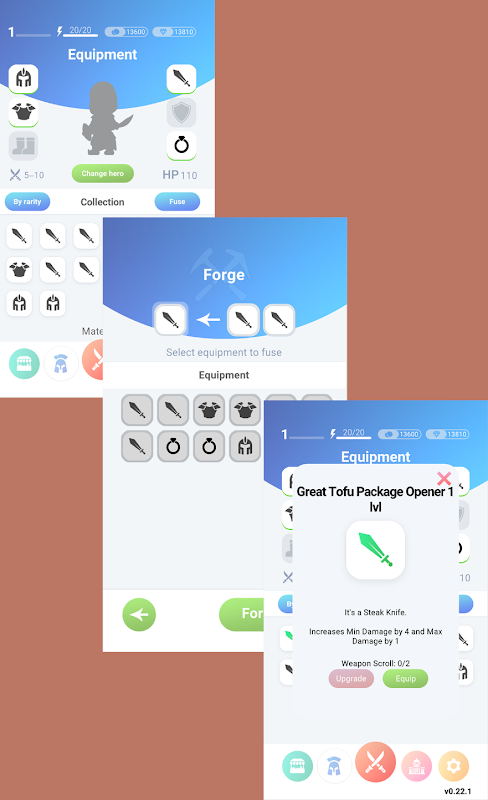 مبارزه کردن. تکامل یابد. پیروزی. TRPG راحت و ساده است - انگشت خود را به سمت راست بکشید و یا به سمت چپ جذابیت کنید.