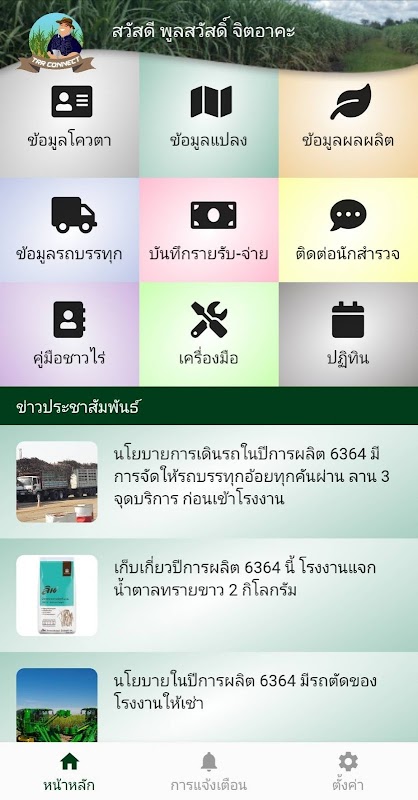 برنامه ای است که به کشاورزان نیشکر کمک می کند که قند را به کارخانه های گروه قند صنعت Roong Ruang تایلندی تحویل می دهد راحتی بیشتر در مشاهده و تأیید داده های نیشکر ارسال شده به کارخانه.