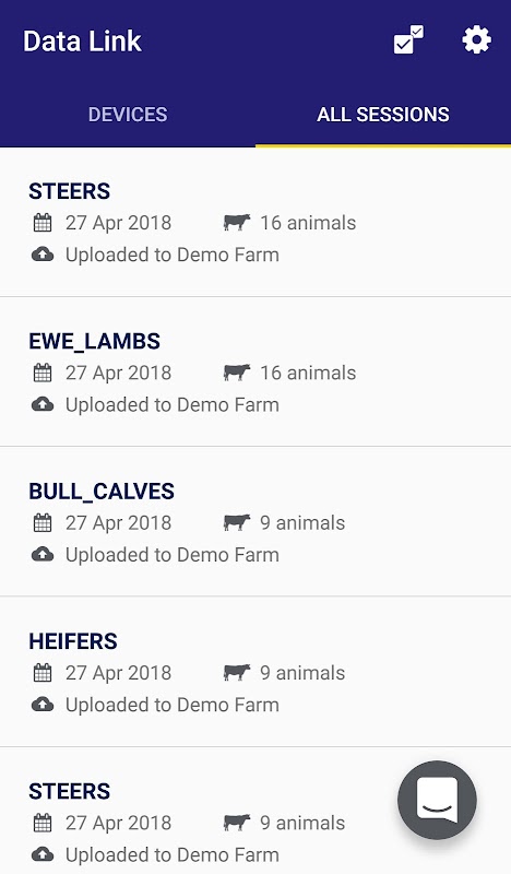 برنامه Tru-Test Data Link برای شما امکان پذیر است که پرونده های جلسه را از دستگاه Tru-Test خود بارگیری کرده و آنها را در دامداری Datamars بارگذاری کنید ، به ایمیل بفرستید یا پرونده های جلسه را به اشتراک بگذارید یا آنها را در برنامه ردیابی ملی خود ارسال کنید ، خواه در خارج از حیاط باشید. یا به خانه برگردید