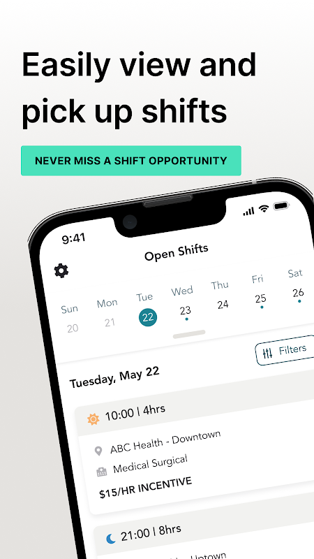 با استفاده از فیلترهایی که به شما کمک می کند تغییراتی را که نیازهای شما را برآورده می کند پیدا کنید، انتخاب های خود را به راحتی محدود کنید. جستجو بر اساس روز یا شب، طول شیفت و واحدهای خاص. یا تنظیمات برگزیده شیفت خود را ذخیره کنید و همیشه شیفت هایی را که ترجیح می دهید ببینید.
