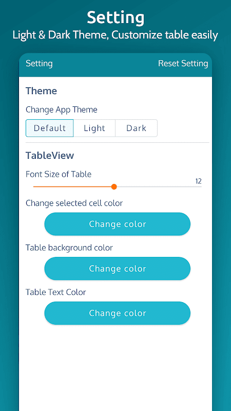 TSV file viewer app theme are easy to customize, they have three different themes I.e. Light, Dark and System Default theme. In System default theme tsv viewer app will inherit phone default theme.