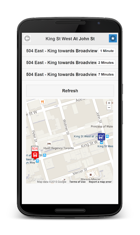 پیدا کردن زمانی که اتوبوس TTC خود را در حال آمدن است بر روی یک نقشه بر اساس زمان واقعی اطلاعات GPS اتوبوس!