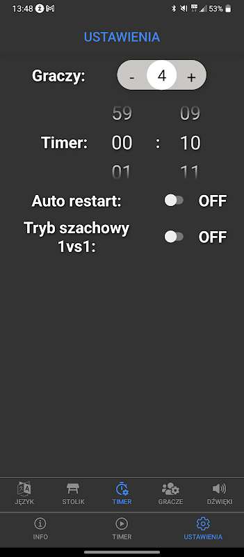 # Added support for up to 6 players. # Added ability to remove/disable a player who left the table. # Added per-player time customization (handicap). # FIX - screen going to sleep durning countdown # Tournament feature temporarily removed — will return in v4.1.0. Updated UI and even more options; app is actively under development.