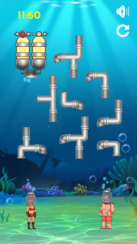 لوله ها را بکشید تا لوله ها به هم متصل شوند. برای آنها کبوترهای دوست داشتنی جریان هوا ایجاد کنید تا در زیر آب تنفس کنند.