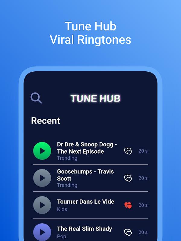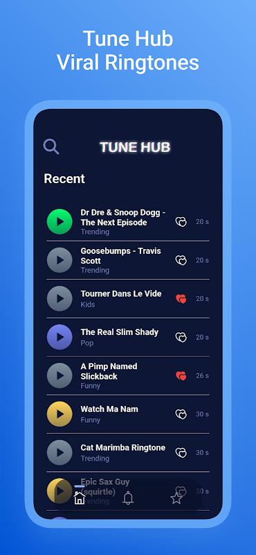 به Tune Hub خوش آمدید - مقصد نهایی آهنگ زنگ شما! مجموعه وسیعی از آهنگ های زنگ با کیفیت بالا را که فقط برای شما تنظیم شده است، کشف کنید. با Tune Hub، مرور و پیش نمایش آهنگ های زنگ بدون دردسر است و به شما امکان می دهد صدای عالی را برای شخصی سازی دستگاه خود پیدا کنید.